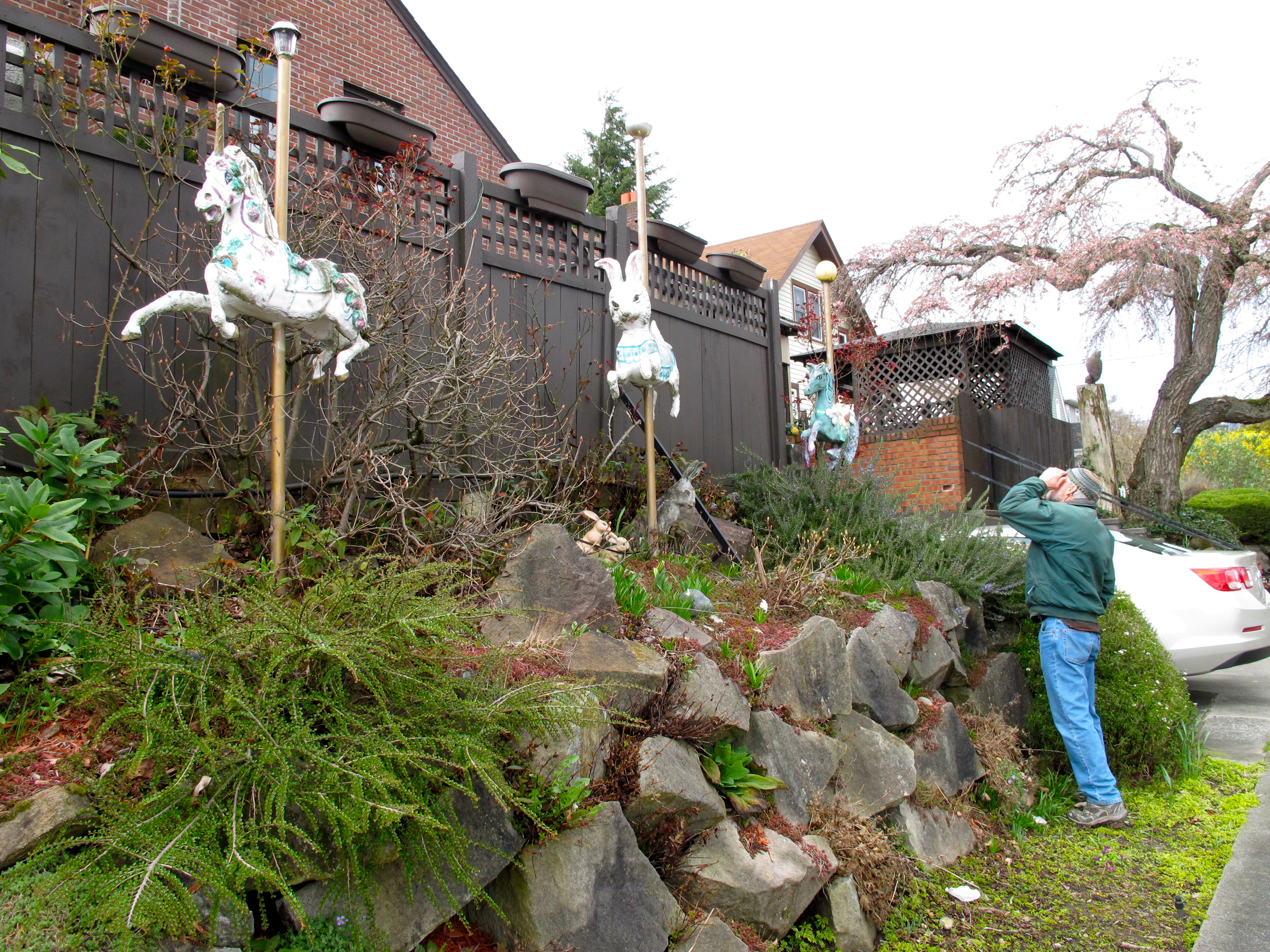 This is a beautiful day for rebirth. The smell of the warm sun on the cherry blossoms is such a joy. The birds are glad to be alive- far above ground. Saw 4 bald eagles yesterday,- adults teaching the maturing to fly and fish (not so successful at fishing quite yet). It was such a treat to watch that pileated fly around in large circles with you at Husum. I am glad to be above today also.